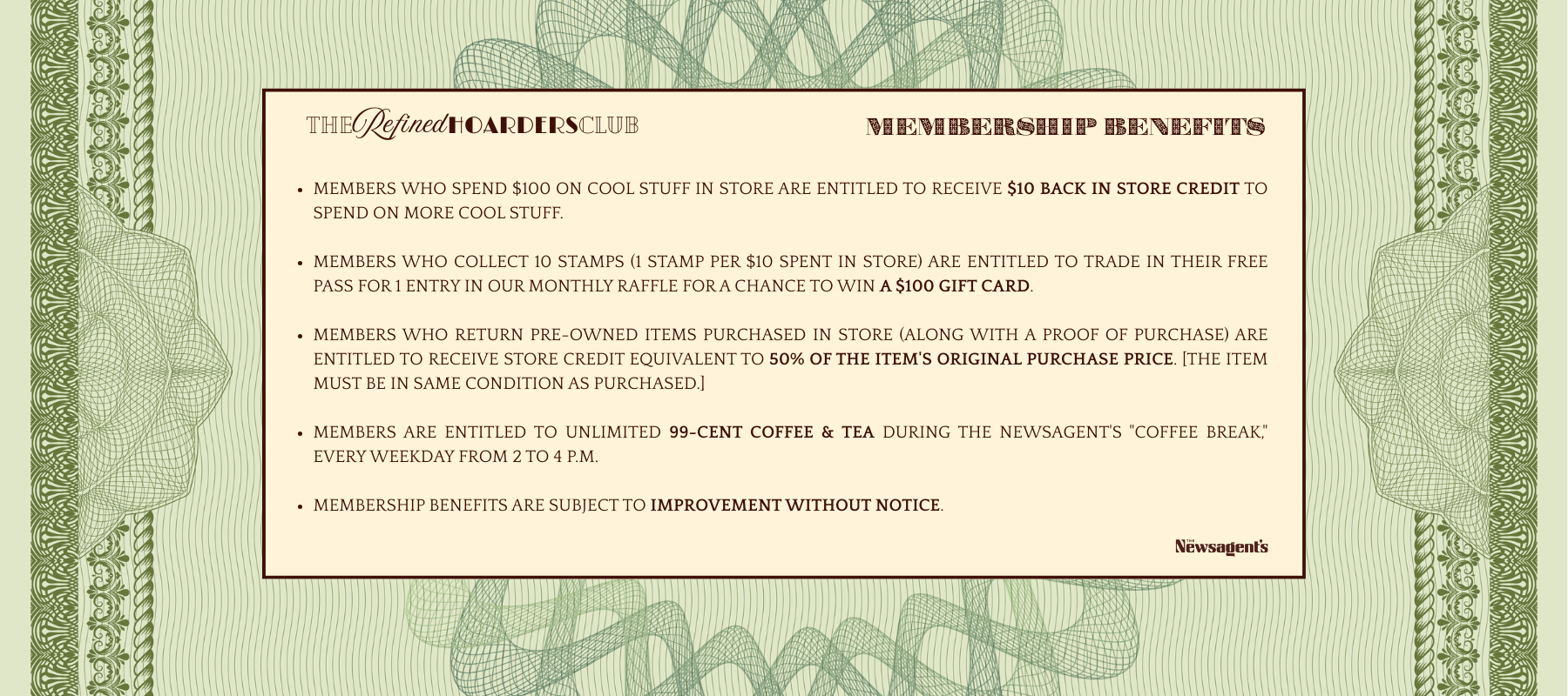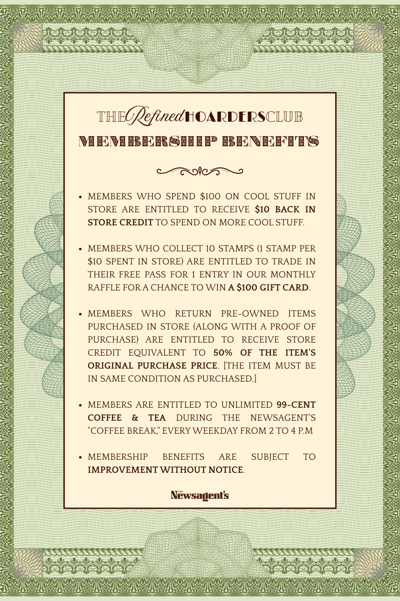 But that's not all! (Did you think it was? Because it's not.) In addition to the Free Pass, all Refined Hoarders Club members get an expertly curated series of perks: